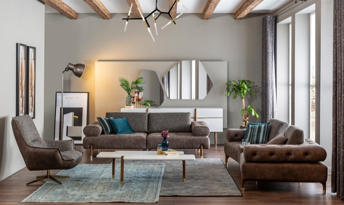 Daha şık ve gösterişli bir stilden yanaysanız, aynı renk ama farklı desendeki kırlentlerin birbiriyle kombinlenmiş bir örneği olan Arcadia köşe koltuk takımına göz atabilirsiniz.