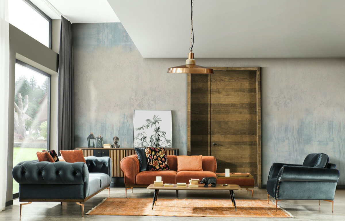 Bir dekorasyon örneği olarak turuncunun en göz alıcı tonunda tasarlanmış Bomonti firması üretimi olan Harmony koltuk takımı, rahatlık ve huzur bakımından isteklerinizi karşılar şekilde üretilmiştir. Koltuk takımının içerisinde yer alan Ethnich berjerde seçimin ne kadar doğru olduğunu gözler önüne serer. Koltuk takımına uygun renk tonlarında seçeceğiniz halı ve perdelerle dekorasyonun en önemli parçalarını seçmiş olursunuz. Bunun yanı sıra dekorasyonun bir diğer parçası olan seçtiğiniz sehpanın üzerine yerleştireceğiniz dekoratif mum, çiçek gibi objelerle ortama daha sıcak bir hava katabilirsiniz. Renk tonlarında uyumlu seçeceğiniz kırlentleri görmek sizi rahat ve mutlu edebilir.