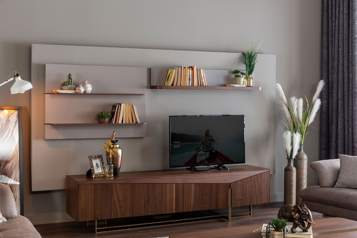 TV ünitesi, bir ortamda kolaylıkla odak noktası olabilir. TV ünitelerinde bulunan raflar ile aradığınız etkiyi yaratabilirsiniz. Özellikle çok sayıda rafa sahip olan tv üniteleri ile kendi küçük kitaplığınızı oluşturabilirsiniz.