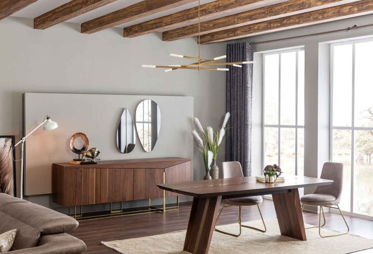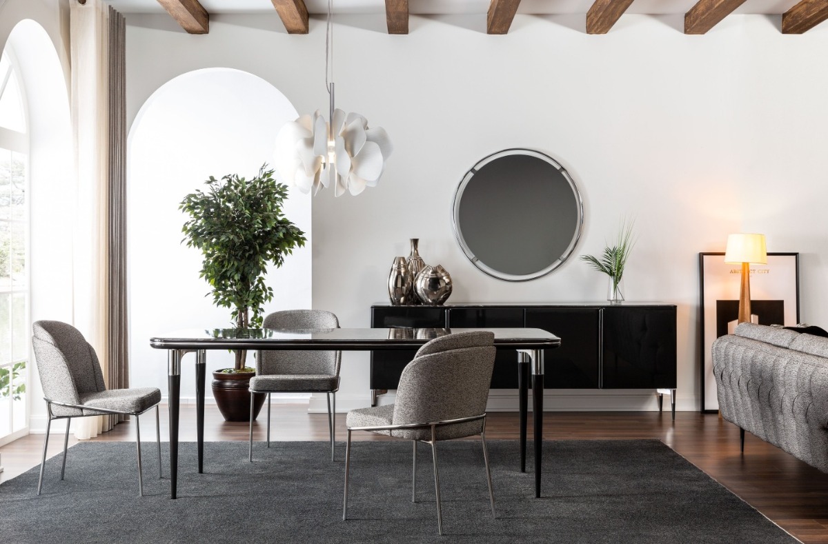 Yemek masalarında bir diğer dikkat edilmesi gereken özellik hangi malzemeden yapıldığı ve görünümü oluyor. Mermer, cam ya da ahşap yüzeylerin her biri, evine ve yemek alanına farklı atmosferler kazandırıyor. Odanın kalanında kullanılan mobilyaların malzemeleri ile uyum sağlaması da önem taşıyor. Cam detaylar ve mermer görünümler ile yemek alanında zamansız ve çarpıcı bir etki yaratabilirsin. Klasik bir stilin çağdaş yorumu ile yemek masanda kontrast renkler kullanabilir, zamansız renkler ve stil ile canlılık ve zarafeti bir araya getirebilirsin.